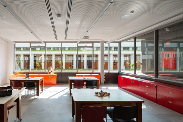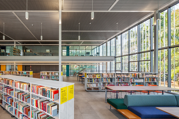 O concurso para o projeto da nova biblioteca do Colégio Santa Cruz, uma escola de grande relevância para a cidade de São Paulo, surgiu ao longo do processo de modernização e reestruturação do seu campus, cujo objetivo era rever e discutir a relação dos espaços arquitetônicos com as novas práticas pedagógicas. A biblioteca original, implantada no centro do colégio, não correspondia mais às demandas atuais da comunidade, por conta de suas limitações espaciais internas e a pouca integração com a generosa área livre ao redor.