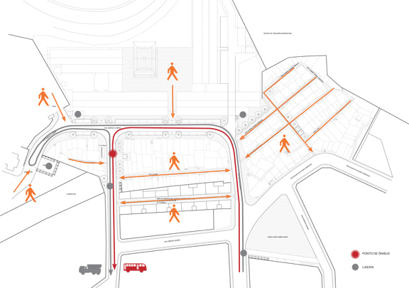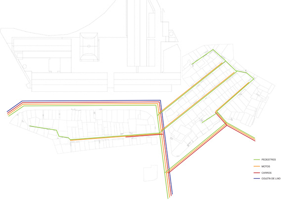 Do ponto de vista da circulação viária e do acesso ao transporte públicos propôs-se a abertura de uma nova rua que se conecta à uma rua já existente, completando assim o circuito viário, oferecendo mais uma alternativa de acesso à toda favela, conectando-a ao bairro e permitindo a circulação de ônibus em seu interior.