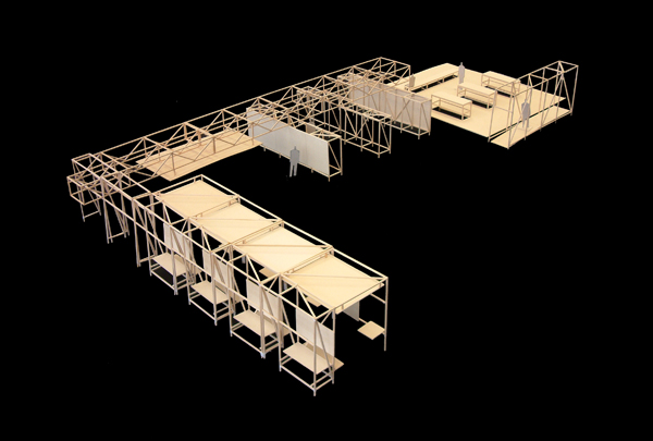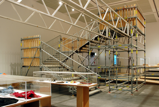 Propomos o precário como novo conceito de existência contra toda cristalização estática na duração. – Lygia Clark – O conceito de precário inspirou os arquitetos a utilizar uma estrutura modular leve como organizador espacial da exposição. O andaime reforça o caráter transitório da exposição e provoca uma relação diferente entre o espectador, o espaço do museu e da obra de arte. O uso de andaimes locais permite a exposição de viajar o mundo todo sem necessidade de transportar o mobiliário, materializando em cada museu, na forma mais adequada. O projeto foi proposto como uma intervenção, uma técnica frequentemente utilizada pelos artistas da Tropicália. A estrutura de metal que carrega a obra temporariamente invade o museu, criando as divisões necessárias, plataformas, rampas, torres, balcões e treliças gerais para orientar o visitante através da exposição. O Teatro Oficina, em São Paulo, projetado por Lina Bo Bardi (cujo trabalho é exibido na exposição), teve uma abordagem semelhante. Ao inserir apenas estruturas de andaimes numa antiga oficina de carro velho, ele foi transformado em um espaço de atuação.