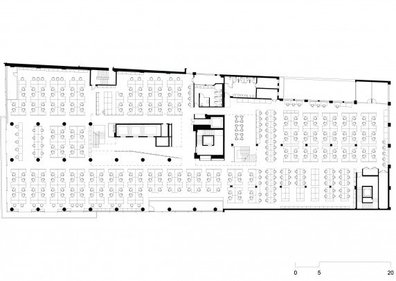 A reforma iniciou com a unificação das redações dos jornais Folha de São Paulo e Agora São Paulo, que estavam distribuídas por diversos andares do prédio. Com o intuito de maximizar a integração buscamos uma unidade plástica, espacial e de fluxo: uma unidade funcional.