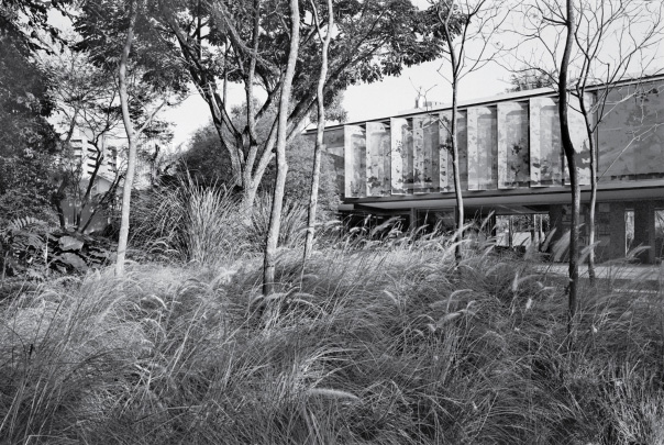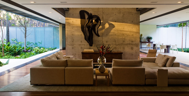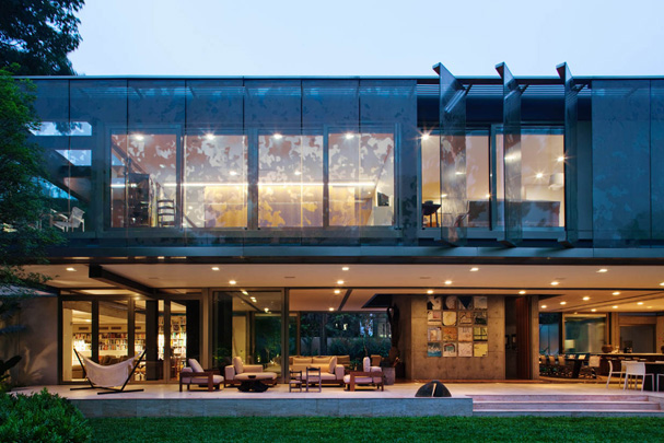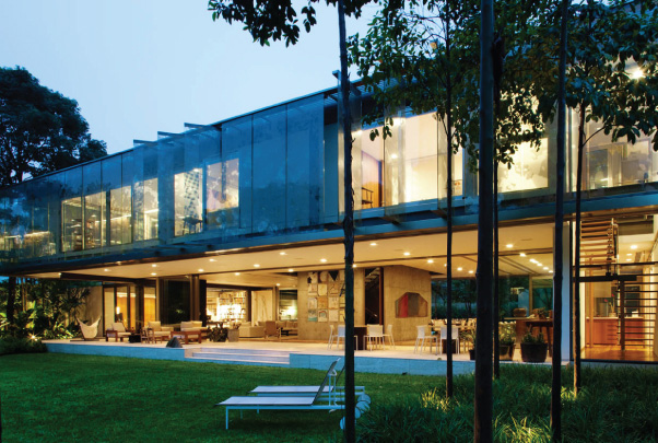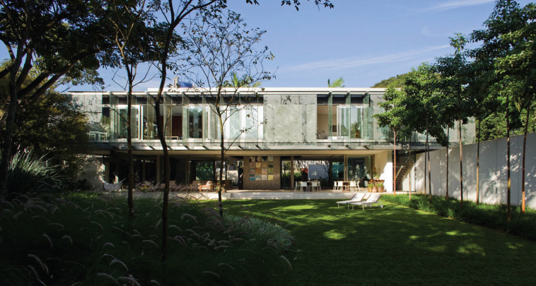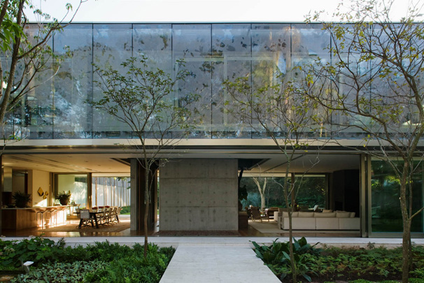 Esta casa, localizada num bairro-jardim da cidade de São Paulo, tira proveito de sua condição privilegiada e faz da integração com a natureza seu traço distintivo. Todos os seus espaços mantêm uma relação clara com o parque de mais de 1.500,00 m2 no qual estão inseridos.