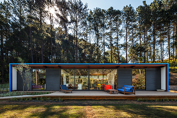 Este pequeno pavilhão de veraneio localiza-se em uma chácara nos arredores de São Roque, uma cidade a aproximadamente 60km de São Paulo.