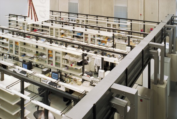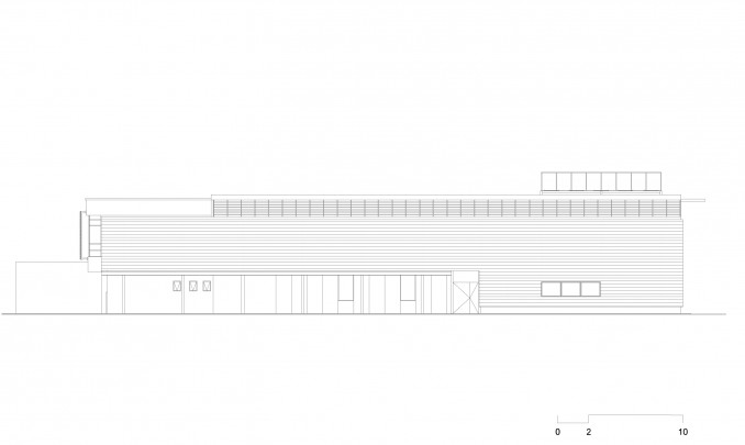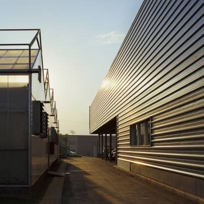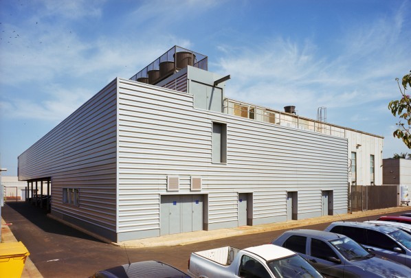 A nova ala de laboratórios (ampliação) foi pensada como um grande container apoiado sobre pilotis. Esta estrutura, somada ao painel quebra sol da fachada frontal e aos biombos de telha metálica da fachada dos fundos formam a nova volumetria do conjunto.