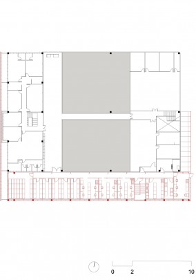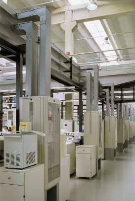 A flexibilidade foi garantida com a criação de espinhas de instalação que foram distribuídas pelo galpão de acordo com o novo layout proposto. As espinhas são como que emissários de central de utilidades dentro do edifício, compostas de toda a gama de infra-estrutura disponível.
