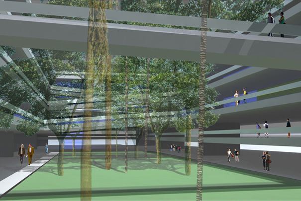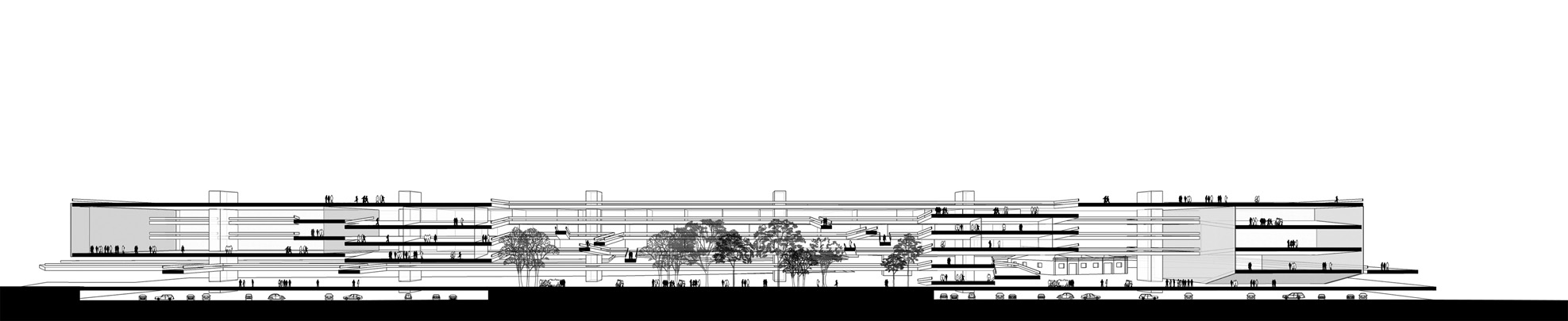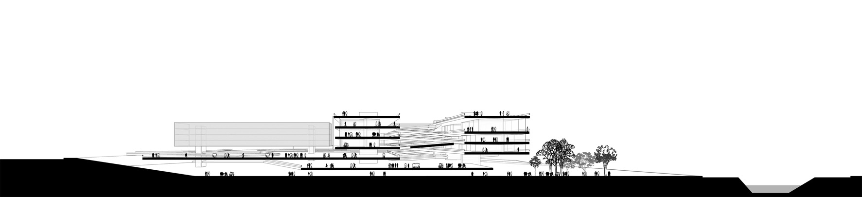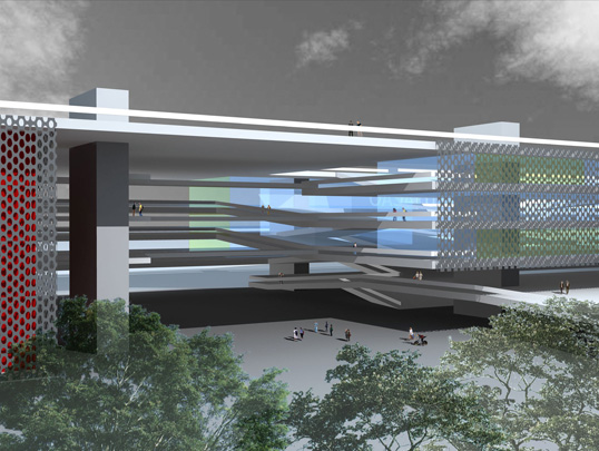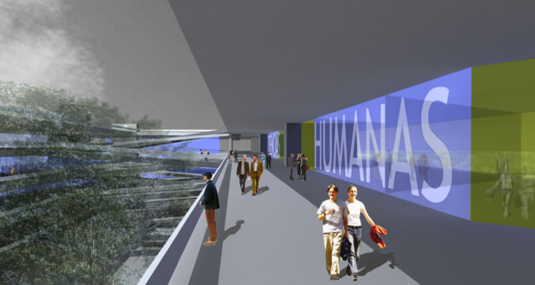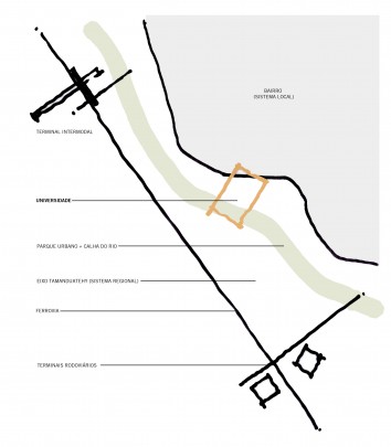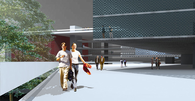 O projeto busca realizar a transição entre dois sistemas urbanos (regional e local), através do prolongamento e desdobramento dos passeios públicos no interior do lote, integrando a universidade a seu entorno. O projeto oferece grandes superfícies equipadas (plataformas servidas por instalações prediais) que, unidas por largas rampas, formam um sistema de planos contínuos, livre para acomodar o programa com grande flexibilidade. Embora os elementos arquitetônicos estejam definidos, este projeto se apresenta como um modelo que deve ser aperfeiçoado durante o processo de projeto junto aos representantes da universidade. Neste sentido é um espaço vivo; uma arquitetura aberta.